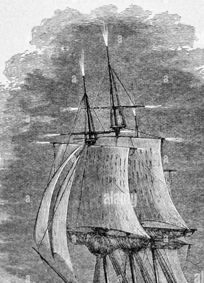 Au XIXe siècle, les matelots bretons croyaient pouvoir faire disparaître le feu Saint-Elme par un simple signe de croix. Cette lumière bleutée, qui apparaissait souvent sur les extrémités des mâts ou des vergues, était perçue à la fois comme un présage divin et une manifestation surnaturelle. Mais dans l’ancienne marine, le feu n’était pas toujours vu comme bienveillant. Certains croyaient qu’il était conduit par un sorcier ou même par un démon, d’où son surnom de « Feu du diable ».